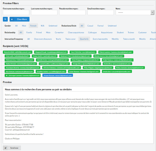 The application provides tools to build mailing lists from a few clicks.