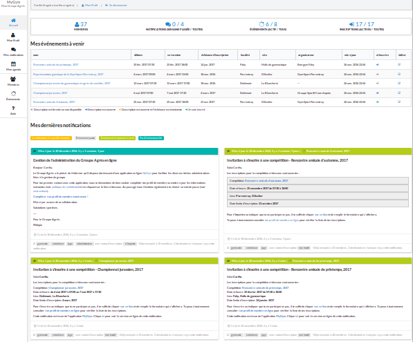 The website of the Groupe Jura Gym is based on MyGym and hosted by dProg since 2016. It contributes to ease the communication between the administrative team and 40 gymnasts.